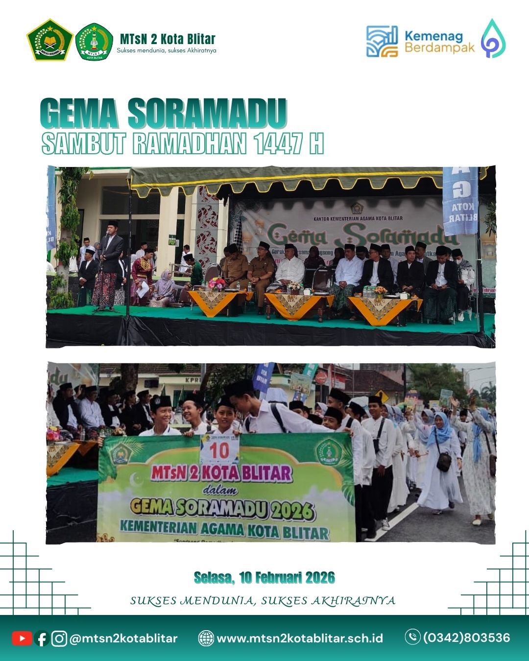 Selasa (10/2/2026) Siswa- siswi MTsN 2 Kota Blitar ikut memeriahkan kegiatan Gema Soramadu yang diadakan oleh Kementerian Agama Kota Blitar.…