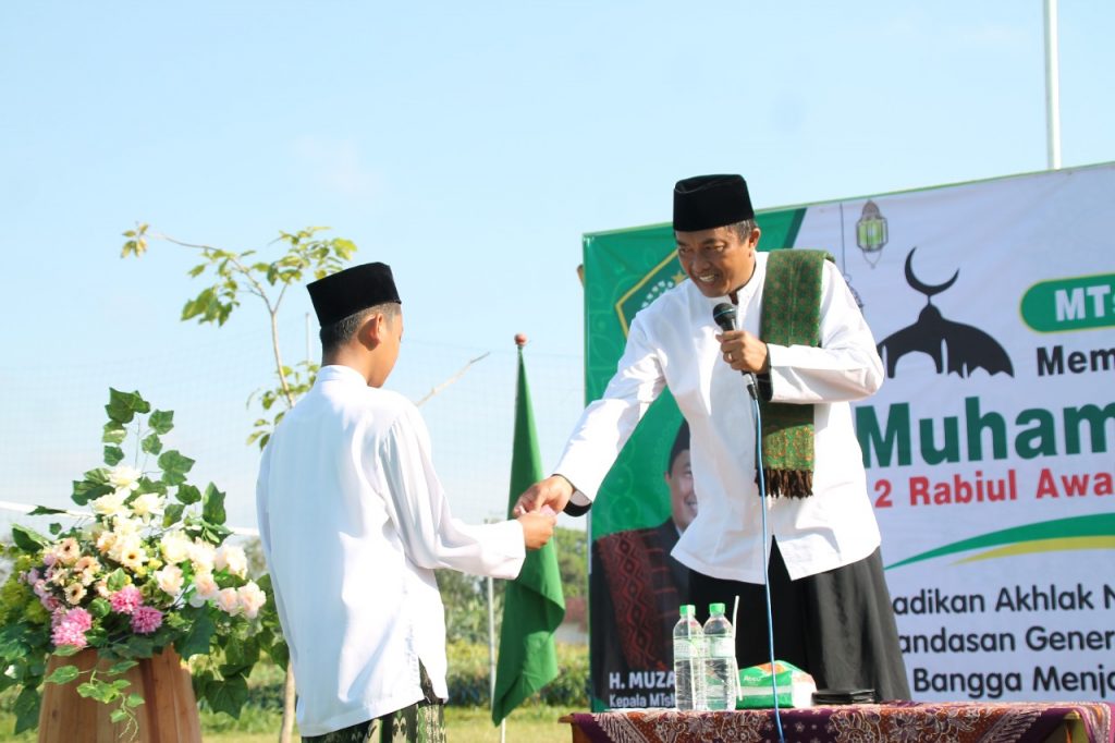 Pada kesempatan ini juga Bapak Kepala Madrasah memberikan hadiah kepada siswa yang berani dan siap menjawab pertanyaan beliau. Tak tanggung-tanggung saat itu juga, ada siswa laki-laki kelas 8 mendapatkan hadiah langsung dari Bapak Muzaini karena berhasil menjawab pertanyaan atau kuis dadakan di tausiyah pagi itu.