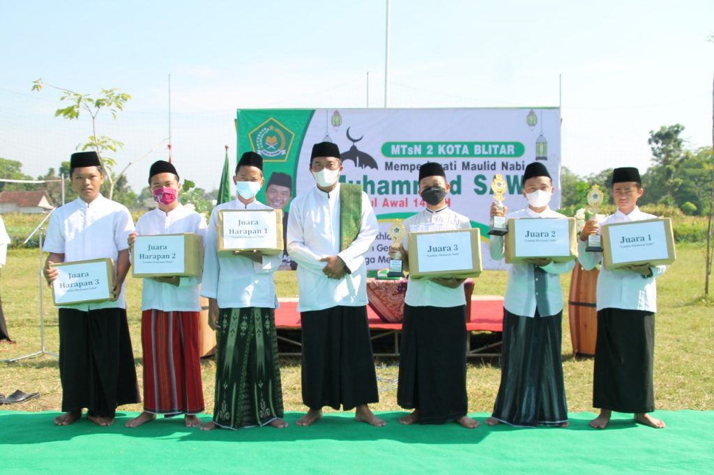 Diawali dengan pembukaan dari pembawa acara, kemudian dilanjut lantunan sholawat yang dipimpin oleh bapak Andi Arifin selaku guru MTsN 2 Kota Blitar. Seluruh warga madrasah bersama-sama melantunkan sholawat dengan khidmat. Setelah lantunan sholawat bersama, dilanjutkan dengan sambutan dan tausiyah singkat dari Bapak Muzaini, Bapak Kepala Madrasah.